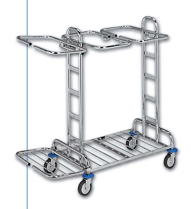 Vozík na triedenie odpadu a bielizne. Stabilná konštrukcia z oceľových pochrómovaných trubiek. Nehlučné kolieska s ochranou proti nárazom.