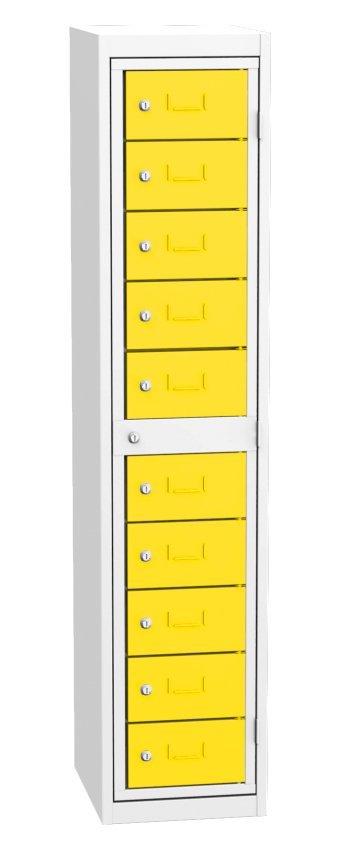 Skriňa pre výdaj čistých pracovných odevov, šírka 380, výška 1770, hĺbka 460 mm. Obsahuje desať výdajných boxov a jeden centrálny celý popis a parametre