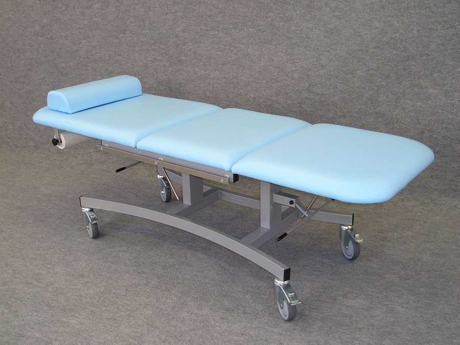 Vyšetrovacie ležadlo pojazdné. Podhlavník je plynule výškovo nastaviteľný pomocou zdvíhacieho mechanizmu. Kovové časti stola sú povrchovo upravené práškovou technológiou. Ložná časť – umývateľná koženka. Možnosť dodať s držiakom na papier. Polohovanie podhlavníka.