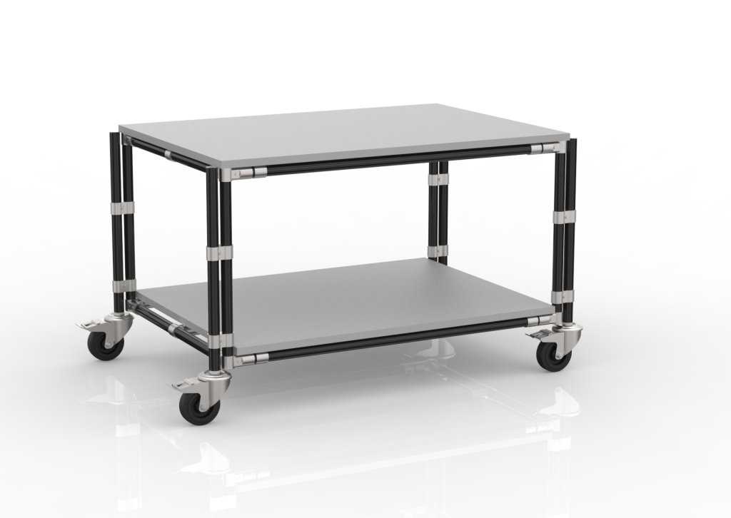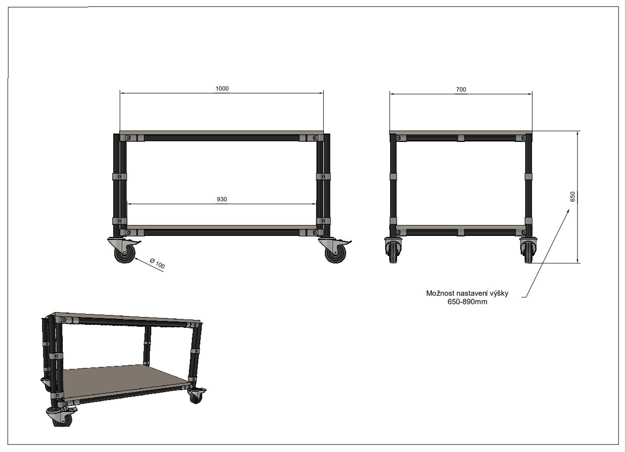 Výškovo nastaviteľný antistatický vozík z trubkového stavebnicového systému je ideálnou voľbou pre manipuláciu s tovarom citlivým na elektronický náboj. Súčasťou vozíka je ESD lamino doska s hrúbkou 19 mm. Výška pracovnej plochy nastaviteľná v rozmedzí 650 – 890 mm. Rozmery 650 x 1000 x 700 mm, priemer kolieska 100 mm.