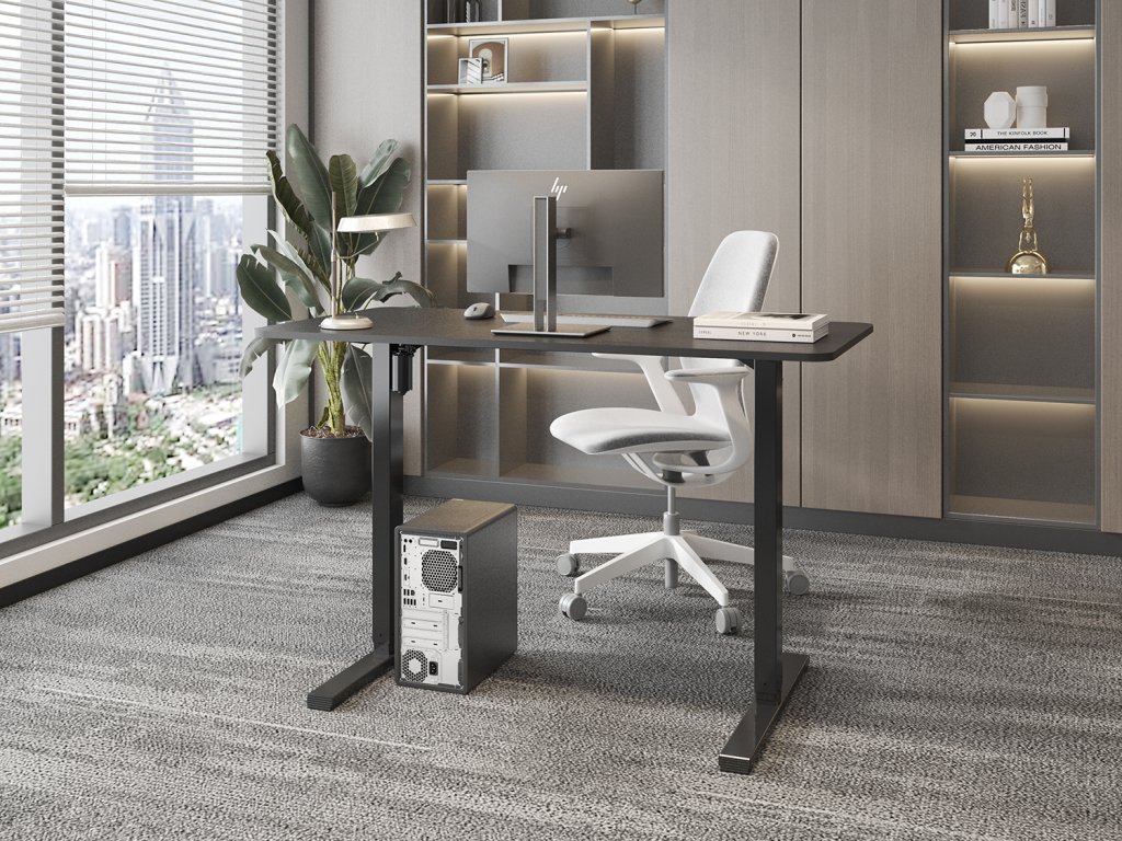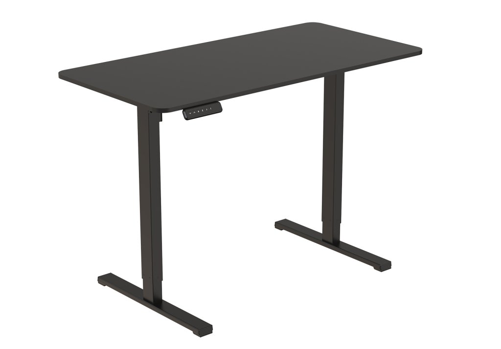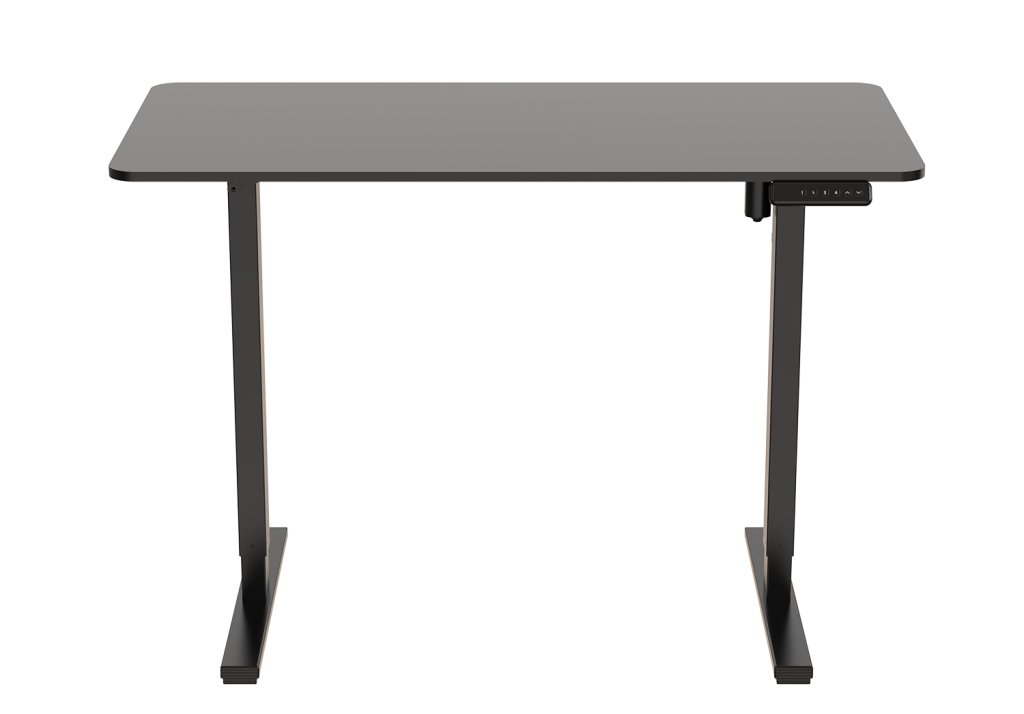 Elektricky výškovo nastaviteľný stôl v rozsahu 750 – 1100 mm. Šírka dosky 1200 mm, hĺbka dosky 600 mm. Plynulé nastavenie výšky umožňuje prácu v sede aj v stoji a zabraňuje tak bolestiam chrbta pri dlhodobom sedení. Podnož a doska čierna.