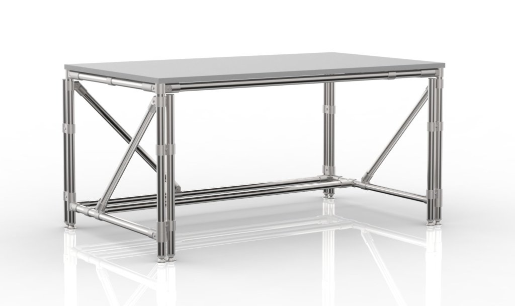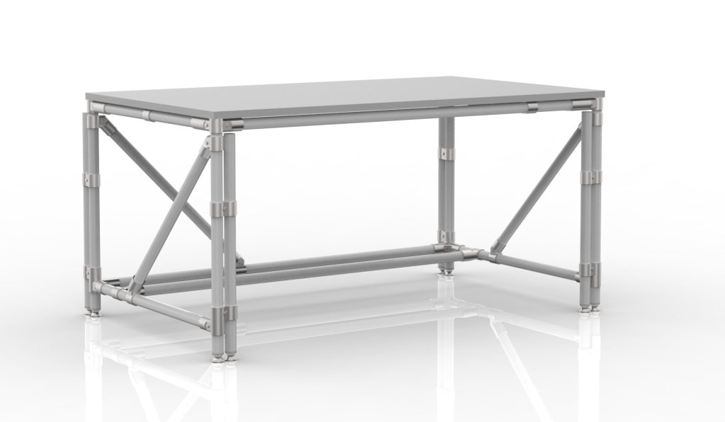 Výškovo nastaviteľný stôl z trubkového stavebnicového systému. Súčasťou stola je DTDL lamino doska hrúbky 18 mm. Výška pracovnej plochy nastaviteľná v rozmedzí 600 – 1000 mm. Nosnosť pri rovnomernom zaťažení 100 kg. Rozmery stola 600 - 1000 x 1203 x 738 mm.