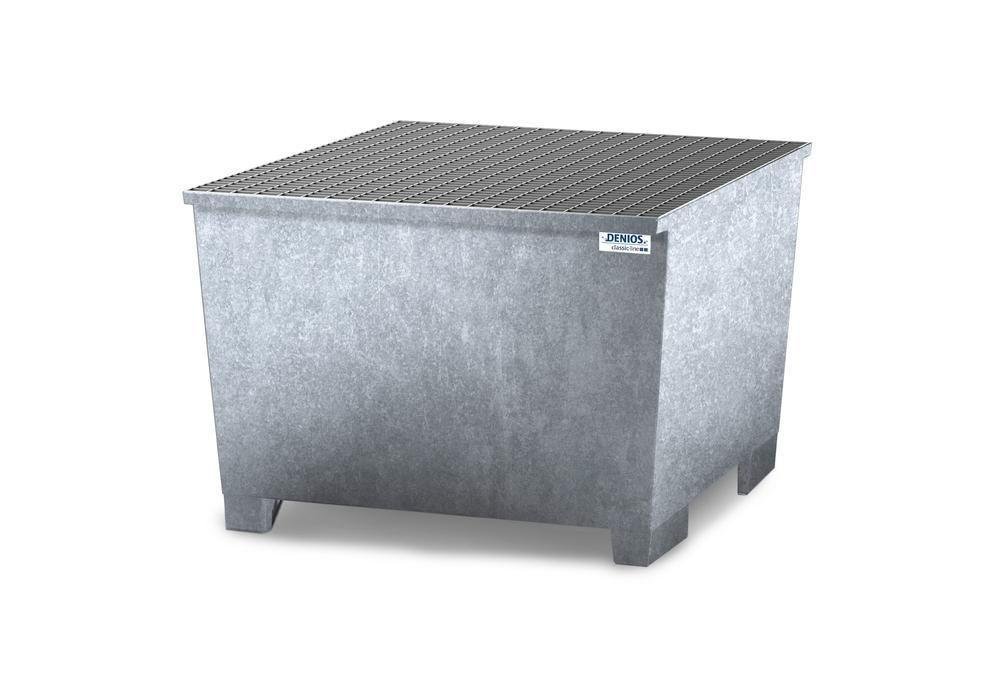 Záchytná vaňa na nožičkách classic-line zo zvárané oceľové konštrukcie. Schválené pre skladovanie horľavých kvapalín (H224-226) a vodu ohrozujúcich látok všetkých tried. Zinkované pre optimálnu ochranu proti korózii. Vyberateľný zinkovaný rošt.