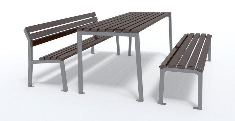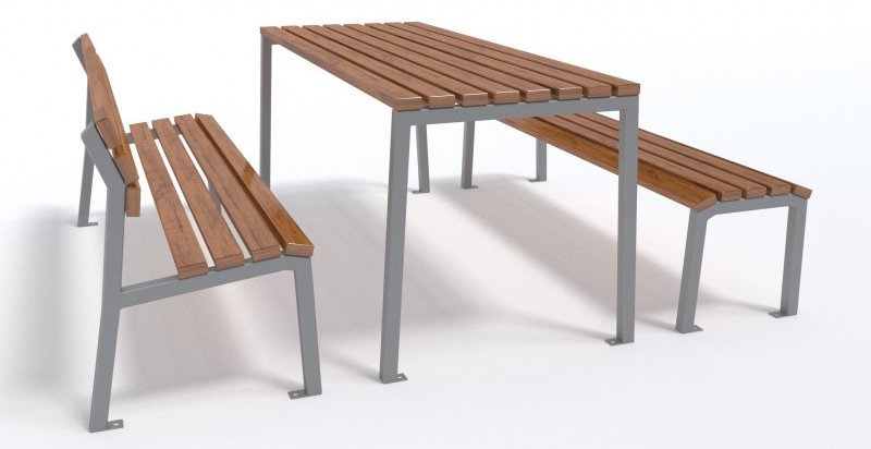 Záhradná súprava s veľmi robustnou konštrukciou lavičiek a stola. Záhradný set obsahuje - 1x stôl + 1x lavica s operadlom a 1x lavica bez operadla. Konštrukcia jokel 60 x 60 mm, ošetrená vypaľovanou farbou alebo žiarovo pozinkovaná. Možnosť uchytenia k zemi skrutkami alebo zabetónovaním. Rozmery latí 1500 x 120 x 40 mm. Záruka 2 roky.