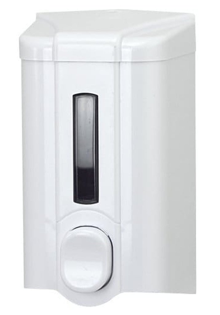 Dávkovač tekutého mydla s praktickým priehľadom na kontrolu naplnenia v bielej farbe. celý popis a parametre