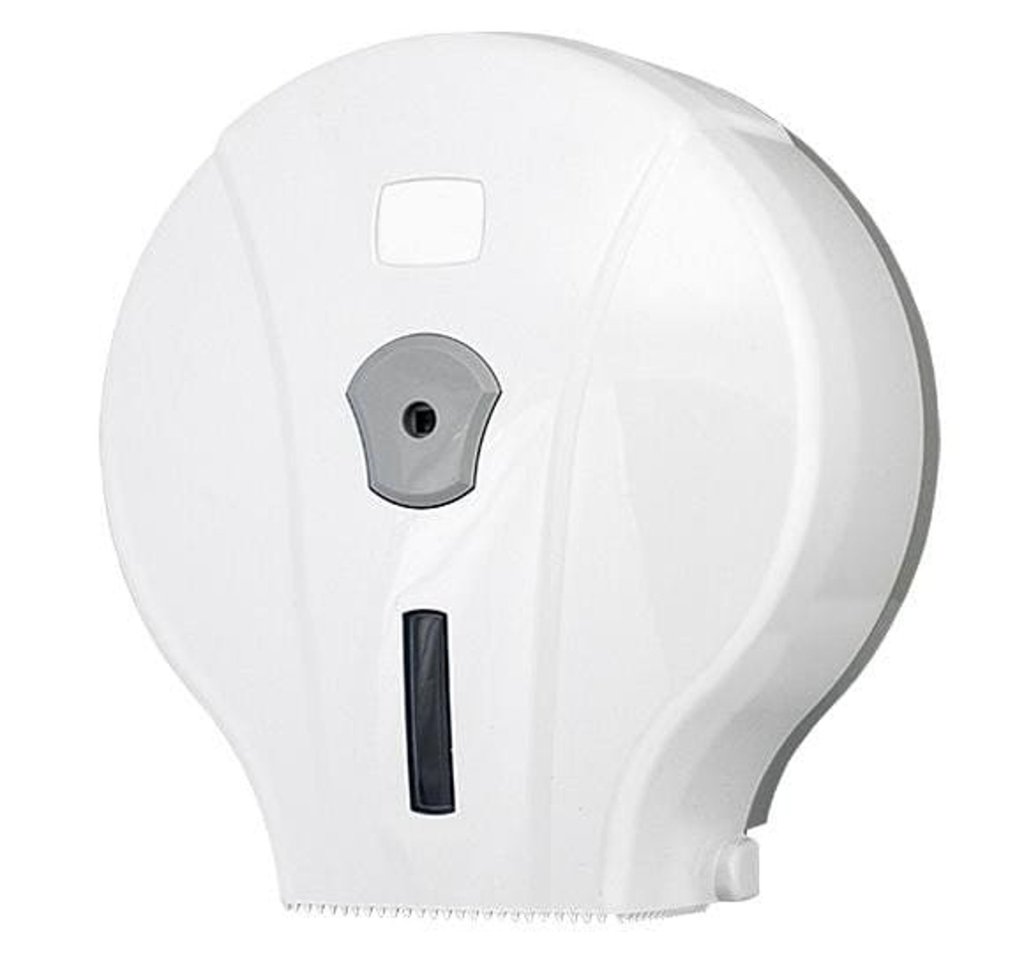 Plastový zásobník na toaletný papier Jumbo Mini (maximálny stredový priemer 19 cm). Priehľad na kontrolu stavu papiera, uzamykateľný.