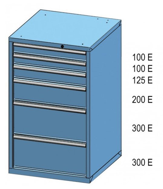Zásuvková skrinka, 6x zásuvka, výška 1215, šírka 731, hĺbka 780 mm. Vnútorný rozmer zásuvky 612 x 612 mm.