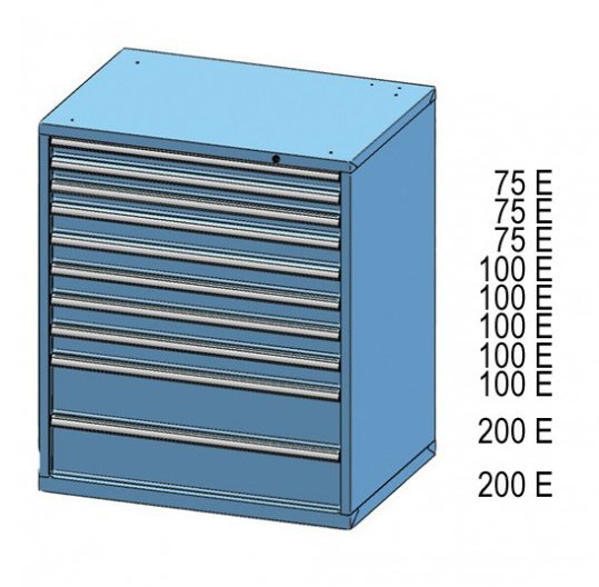 Zásuvková skrinka, 9x zásuvka, výška 1215, šírka 1037, hĺbka 780 mm. Vnútorný rozmer zásuvky 918 x 612 mm.