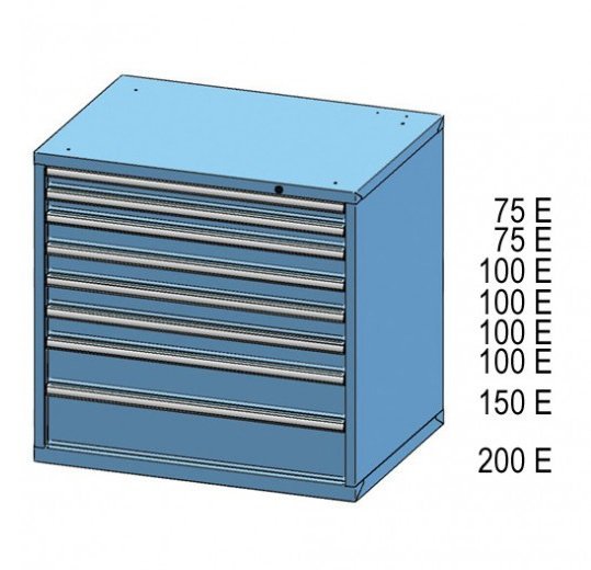 Zásuvková skrinka, 7x zásuvka, výška 990, šírka 1037, hĺbka 780 mm. Vnútorný rozmer zásuvky 918 x 612 mm.