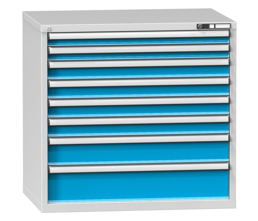 Zásuvková skrinka, 8x zásuvka, výška 990, šírka 1037, hĺbka 780 mm. Vnútorný rozmer zásuvky 918 x 612 mm.
