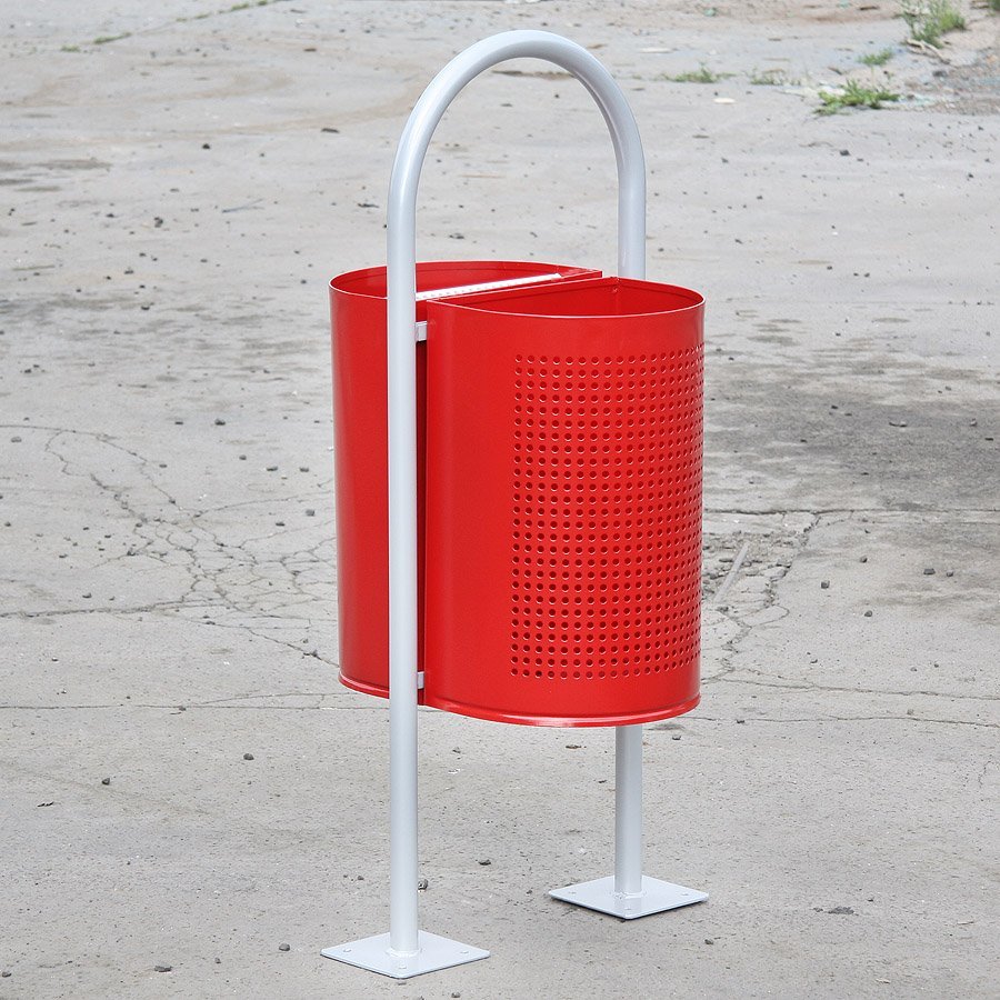 Závesný dvojkôš - plný + dierovaný, 1 x popolník. Rám RAL 9006, kôš RAL 3000. Rozmery v mm: (V x Š x H) 490 x 250 x 330. Celková celý popis a parametre