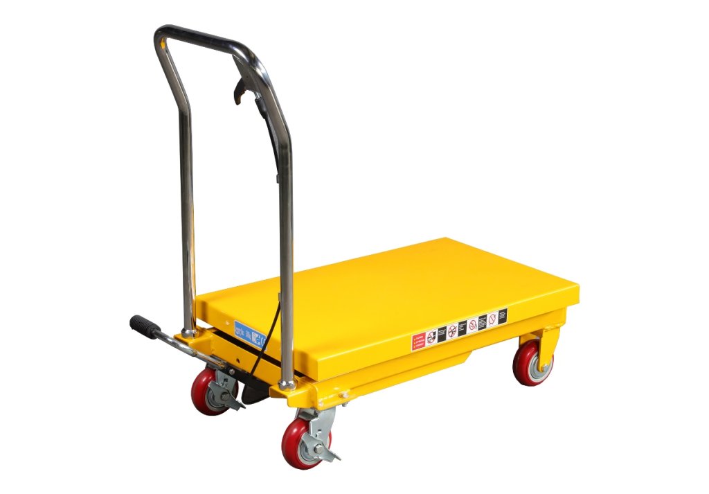 Zdvíhacia nožnicová plošina vybavená nožným hydraulickým čerpadlom s nosnosťou 500 kg a maximálnym zdvihom 900 mm. celý popis a parametre