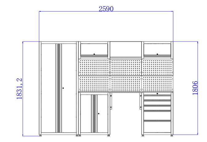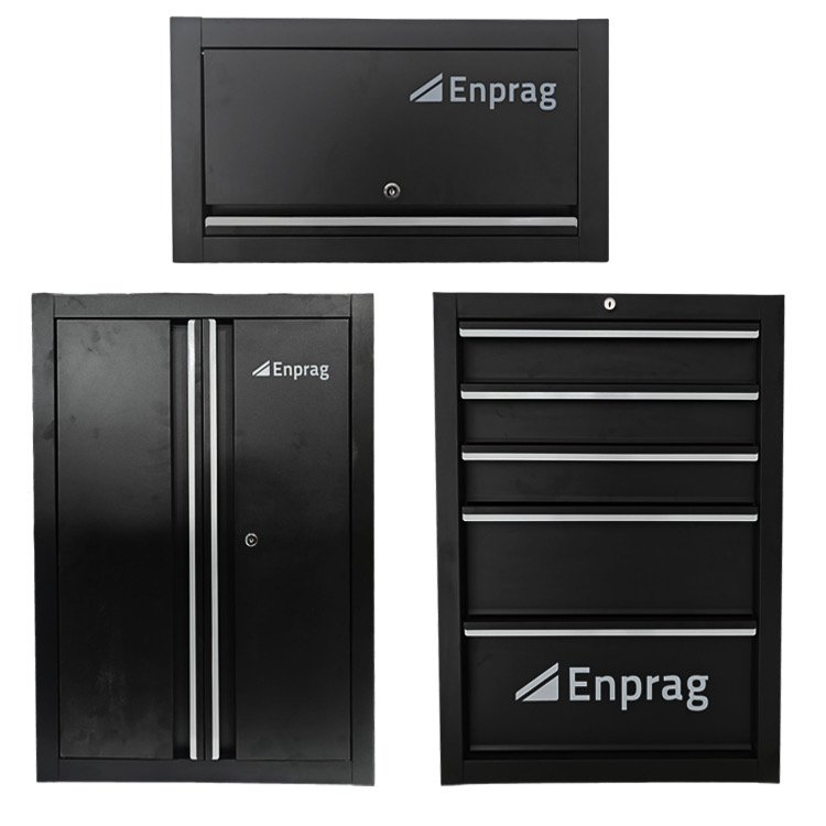 Multifunkčná zostava dielenského nábytku v nadčasovej čiernej farbe ponúka nielen štýlový vzhľad, ale predovšetkým maximálnu praktickosť a dostatok úložného priestoru pre všetky vaše nástroje a vybavenie.