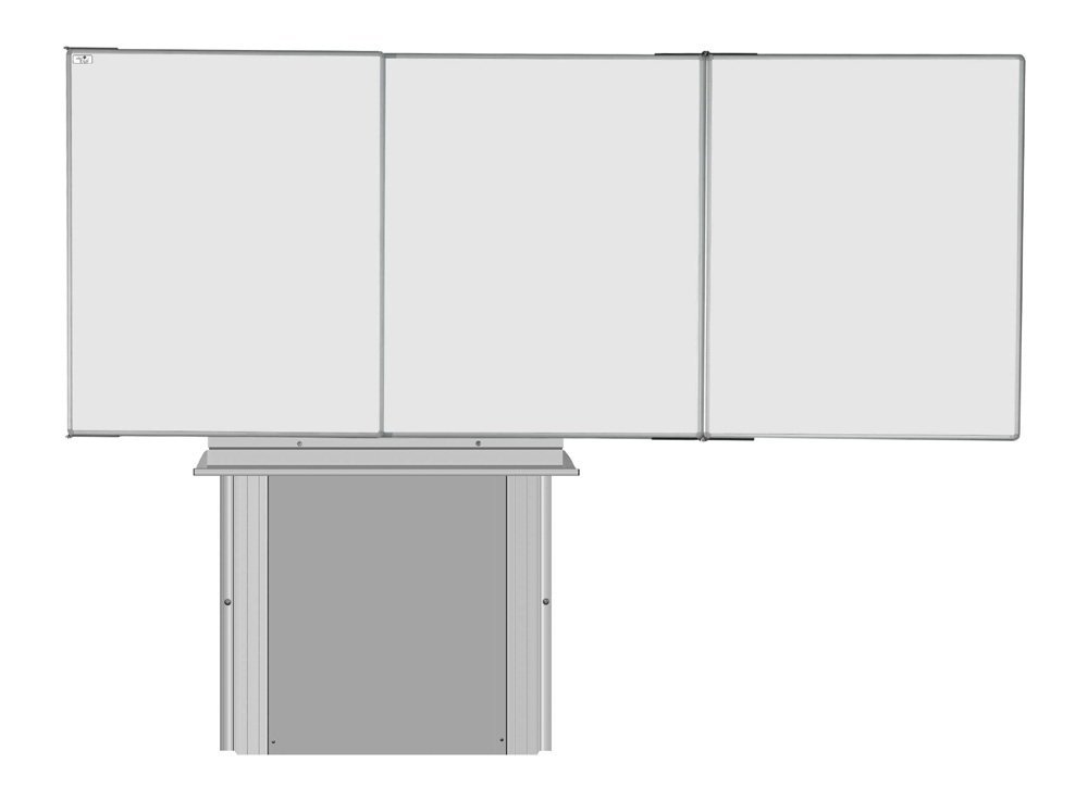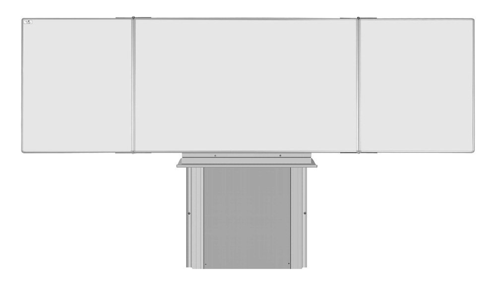 Trojdielna magnetická tabuľa s dvojvrstvovým keramickým povrchom najvyššej kvality na Stojane zdvíhacím Al + rameno pre projektor. Rám z eloxovaného hliníka v prírodnom odtieni, plastové rohy. Rozmer v. 120 x š. 200 cm.