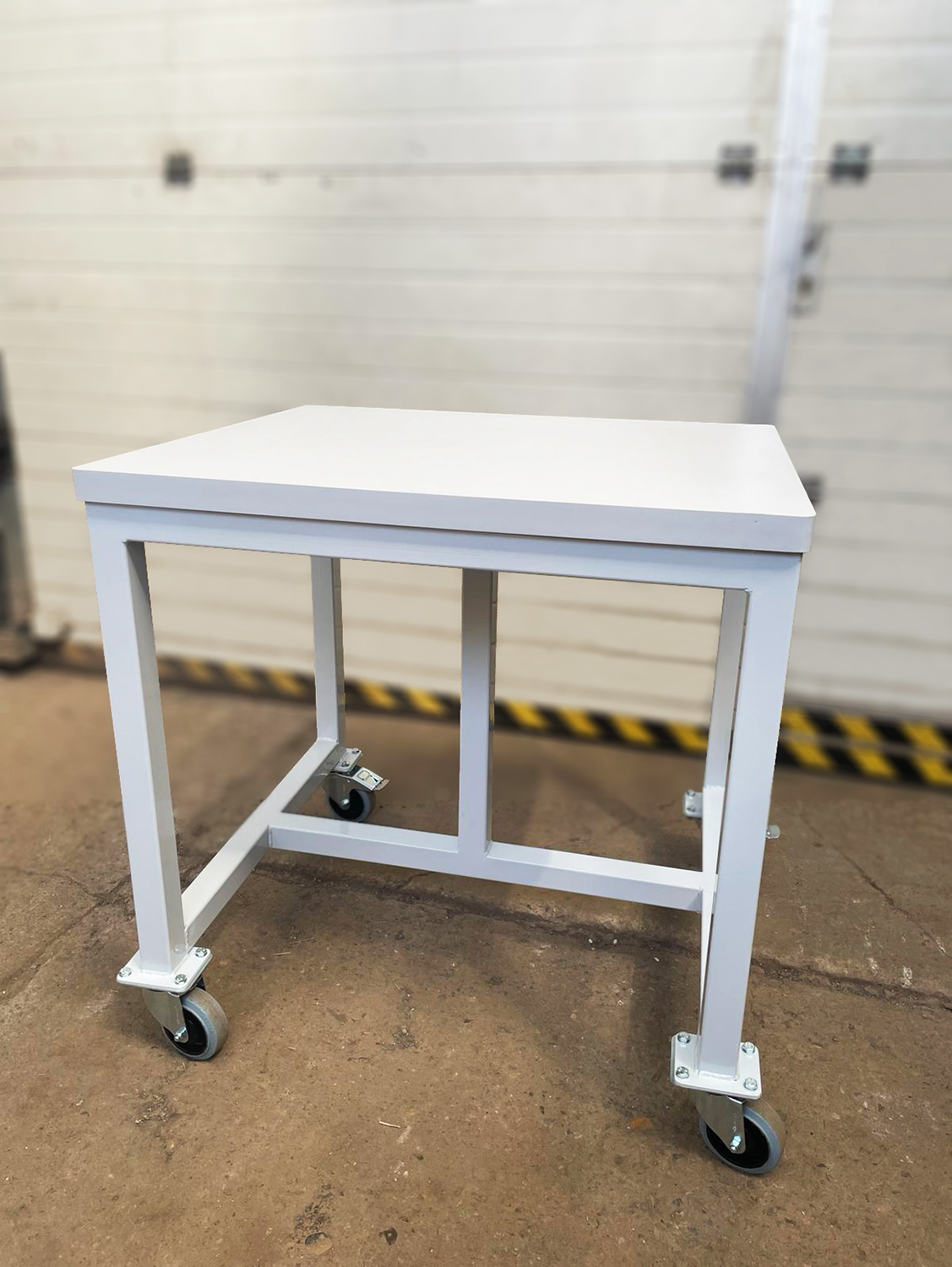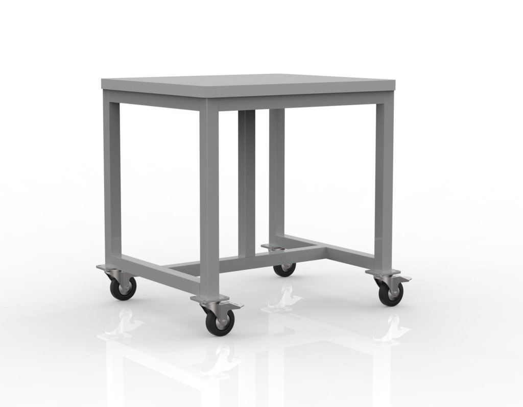 Zváraný dielenský stôl na kolieskach. Súčasťou stola je pracovná plocha z laminovanej dosky hrúbky 36 mm, 4 kolieska s brzdou s priemerom 100 mm. Konštrukcia z zváraného joklu 45 x 45 mm opatrená šedým lakom. Nosnosť pri rovnomernom zaťažení je 150 kg. Rozmery sú 810 x 800 x 700 mm.