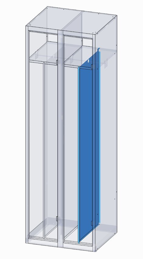 Šikmá strieška pre šatníkové skrine firmy POLAK. Striešku je možné objednať dodatočne, k šatníkom sa pripevňuje bez spojovacího materiálu. Výška zadnej časti strechy je 250 mm.